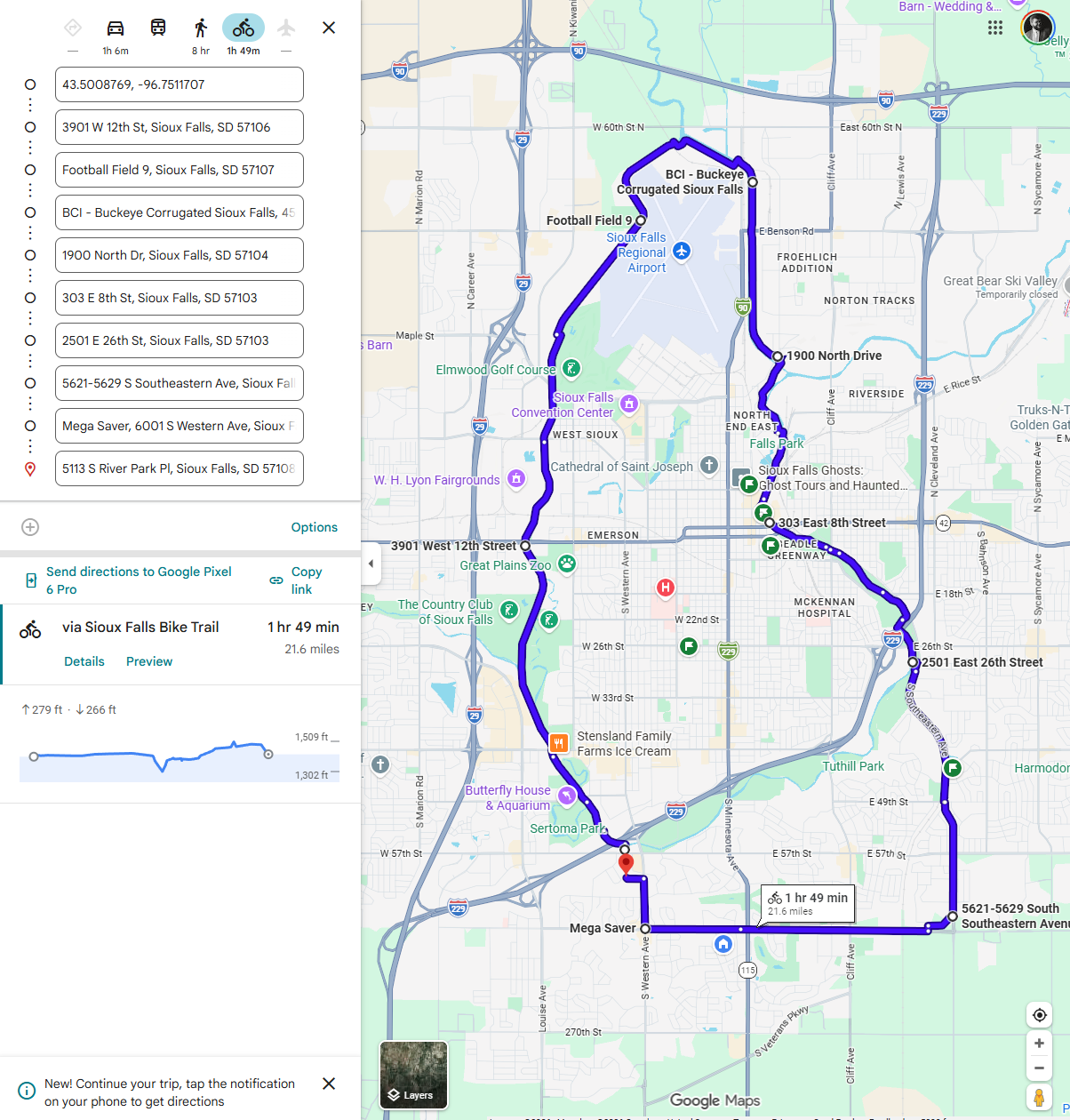 On the theme of "figuring out how to adult", I've found that modest goal setting is very important for me. Set too ambitious of goals and you manifest stress or disappointment. Set no goals and you'll have nothing to work towards. Being an adult is weird because no one tells you what you need to do anymore and there are significantly less opportunities for "atta boy"s. You gotta atta boy yourself sometimes, ya know? Well my modest goal from the start was to bike the entire Sioux Falls trail. I had the goal for a few years, but this last Sunday, I got 'er done.